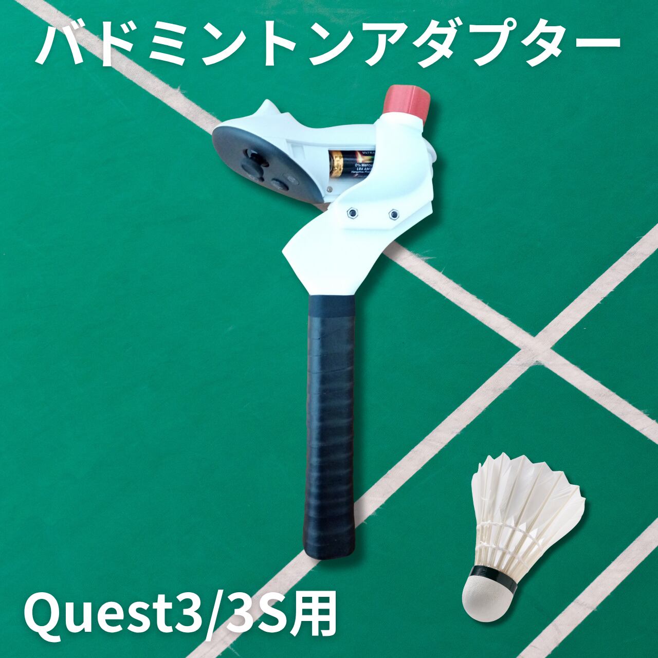 このアダプターを使えば、バーチャルでも現実のコートでも、よりリアルで楽しいバドミントンを体験していただけます。